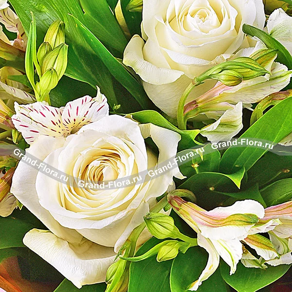 Жемчужное ожерелье - букет из белых альстромерий и роз