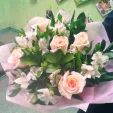 Невесомый букет, пронизанный дымкой романтики и волшебства, источающий нежный аромат и дарящий приятные и теплые эмоции. Букет призван вызывать восхищение своей красотой и лаконичностью.